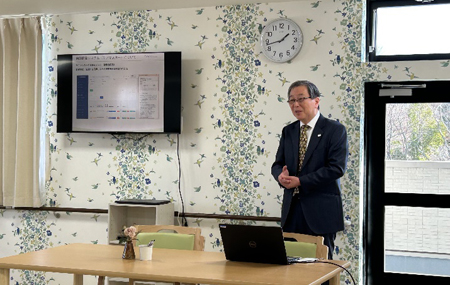 アンジェス八王子施設長は施設の特徴について、看護部長からはアンジェスの看取りまで行える看護体制に関して説明しました。