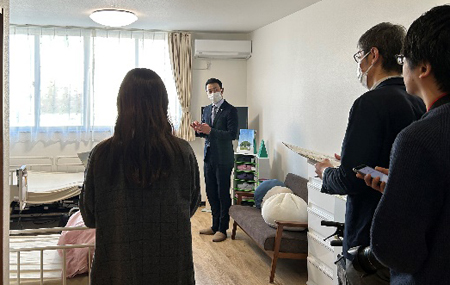 記者説明会の後は、アンジェス八王子の居室や施設を案内しました。